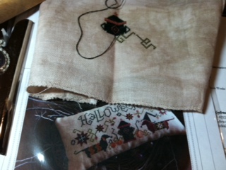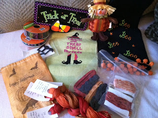 Well, Diane and I did our Halloween exchange in Sept when we went to St Charles for the Celebrations of Needlework retreat/shopping/fun times. We had a blast the two of us. Always an adventure driving around a town neither of us knows, you just never know where we end up. Sonic was only 3 miles from the hotel and was in the GPS and we end up 20 miles at another Sonic thanks to GPS. LOL We just laugh and go along for the ride. Here is the exchange that I stitched up for Diane (shamelessly stole Diane's pics).